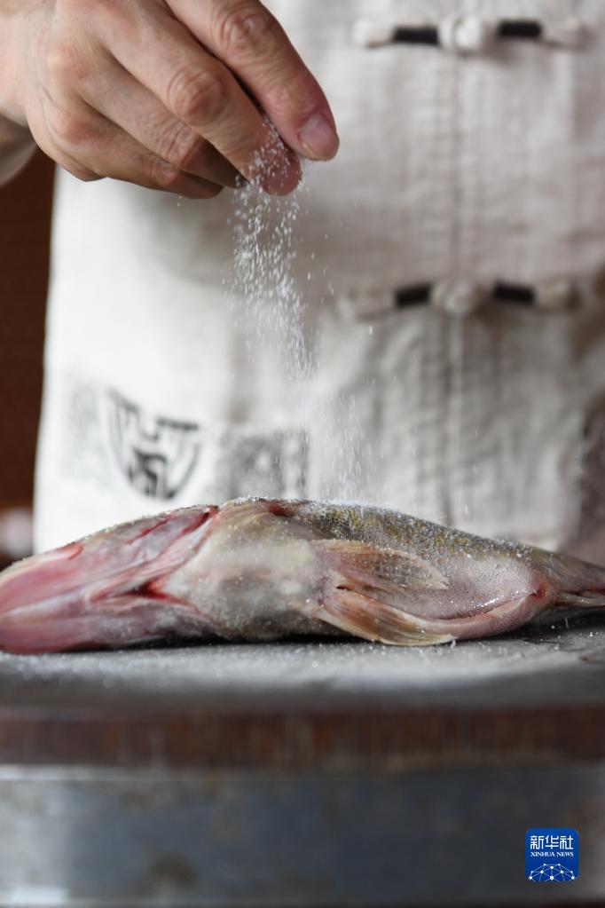 6月1日,在安徽省黃山市一家百年徽菜老店里,店主鐘少華在進行臭鱖魚的腌制。他是徽州臭鱖魚制作技藝非遺傳承人。
