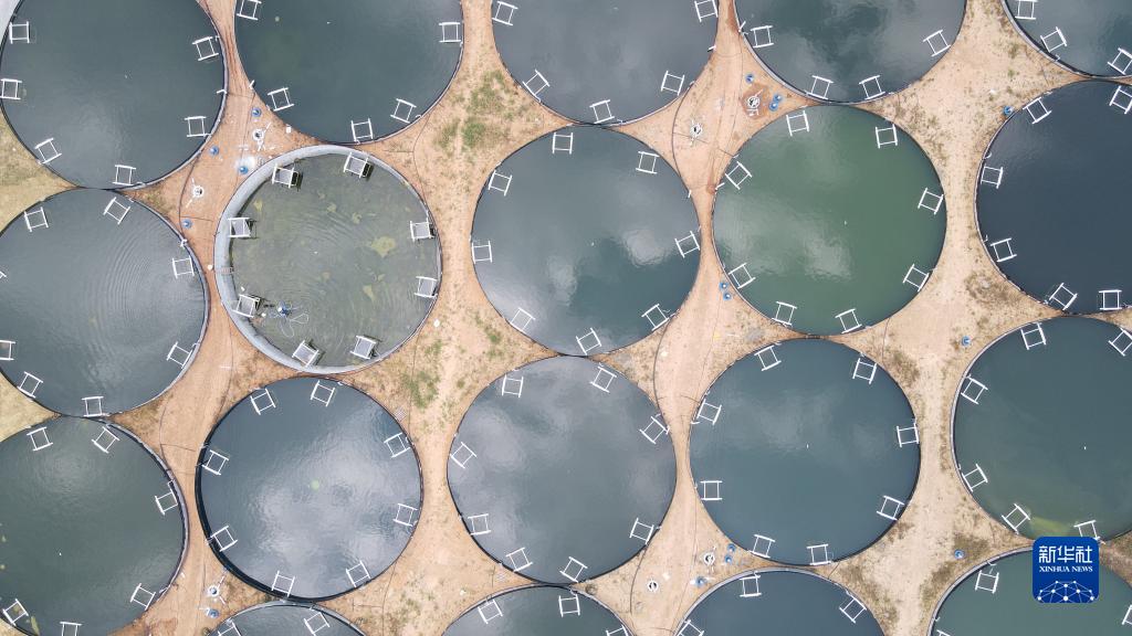 這是6月1日在安徽省黃山市歙縣拍攝的一家鱖魚養殖基地(無人機照片)。