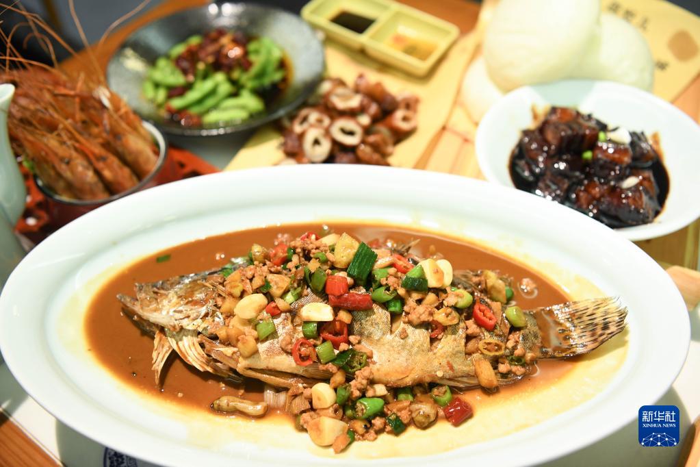 這是6月3日在浙江省杭州市一家杭幫菜館里拍攝的臭鱖魚及杭州本地菜品。