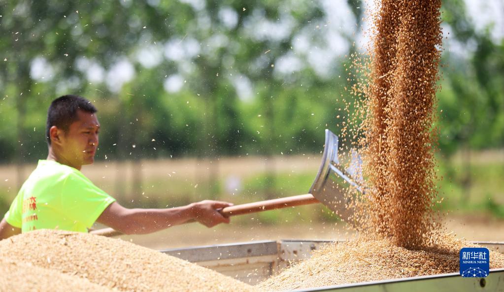 近日,在山東、河南、江蘇等地,麥收工作正緊鑼密鼓進行,不少地方晝夜不停搶收小麥,并進行烘干晾曬,確保小麥顆粒歸倉。