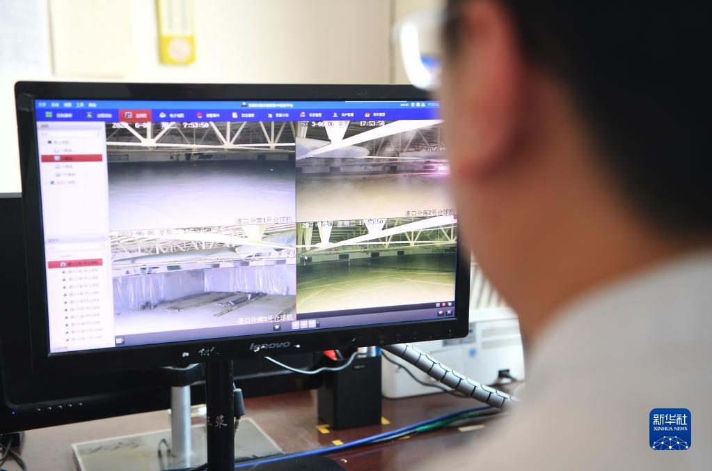 6月6日,在中儲糧安陽直屬庫有限公司滑縣道口分公司,工作人員通過智能化糧庫視頻集中監控平臺監測糧庫運行情況。