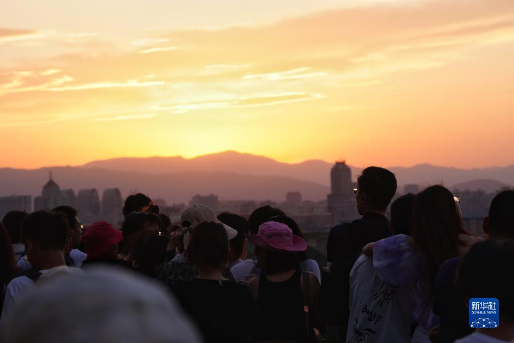 當日日落時分,北京出現美麗晚霞,映紅天空。