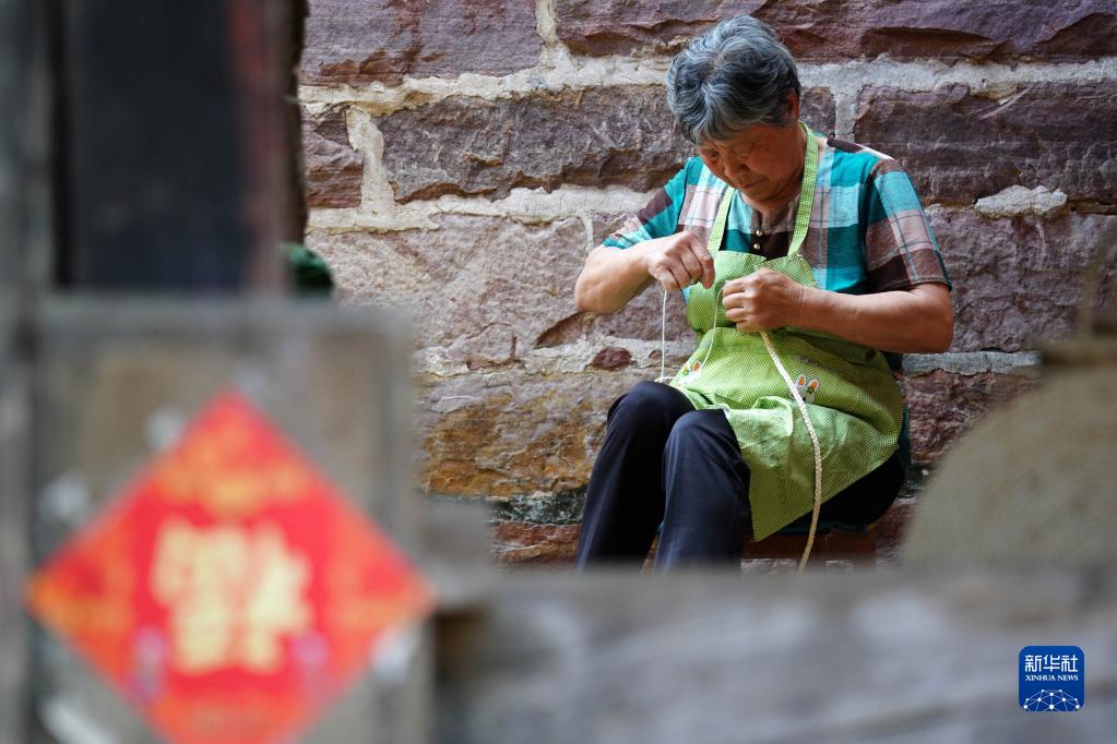 6月7日,河北省沙河市王硇村村民在自家做手工。