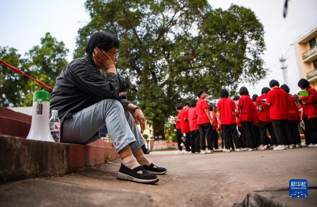 6月7日,張桂梅在考場外休息。