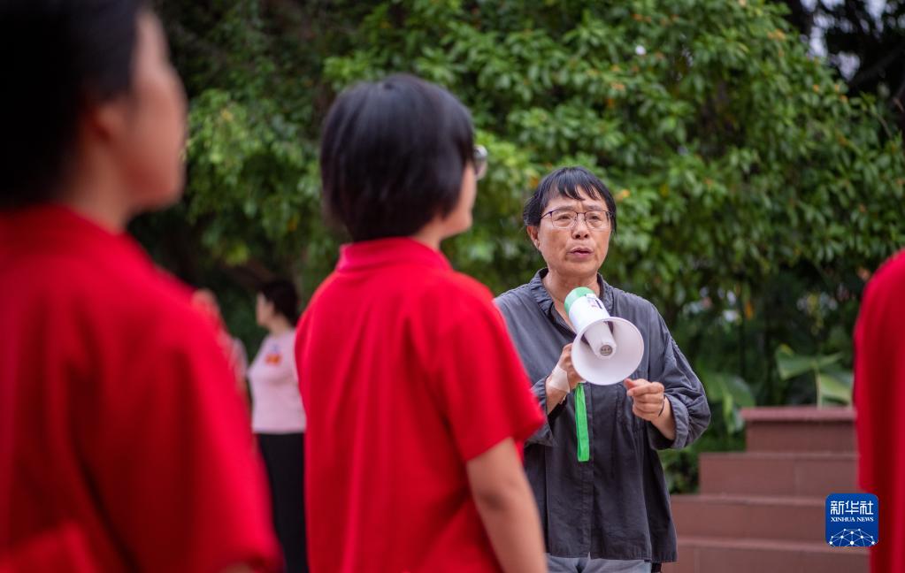 6月7日,張桂梅給準備出發參加高考的同學們加油鼓勁。