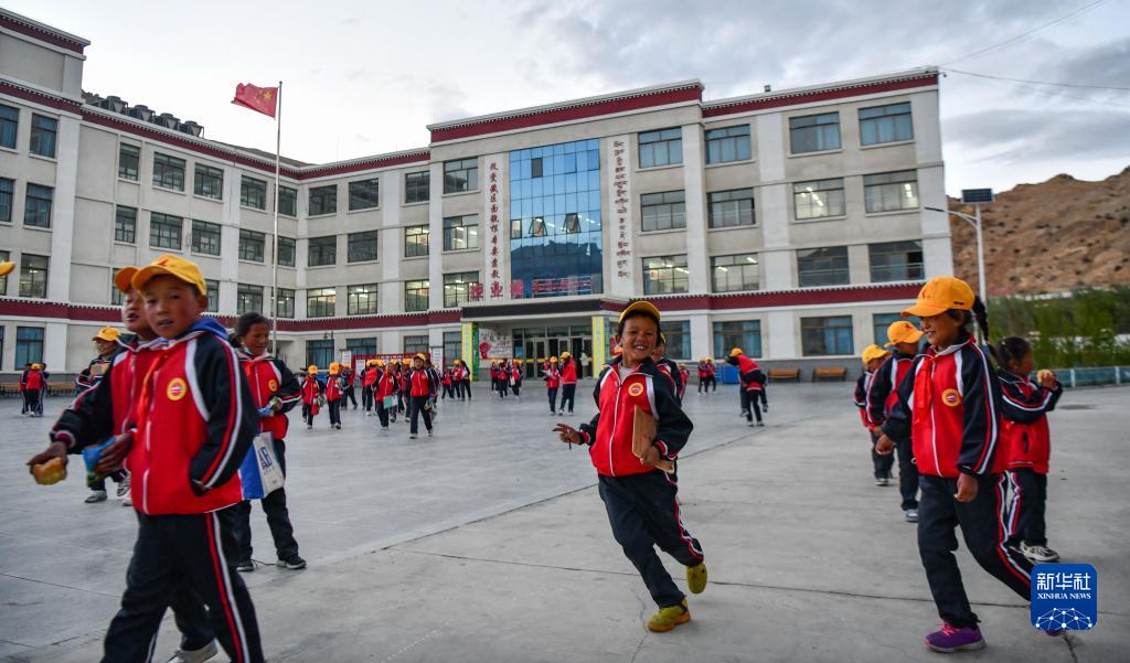 晚上9點,扎西宗鄉完全小學的學生上完晚自習,陸續返回宿舍(6月5日攝)。新華社記者 晉美多吉 攝