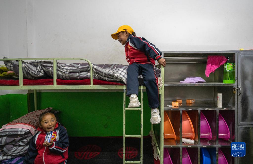6月5日,扎西宗鄉完全小學的學生在宿舍準備就寢。新華社記者 費茂華 攝