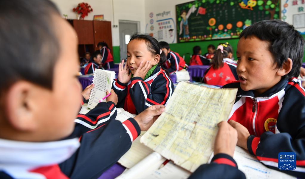 扎西宗鄉完全小學的學生在背乘法口訣(6月5日攝)。新華社記者 晉美多吉 攝