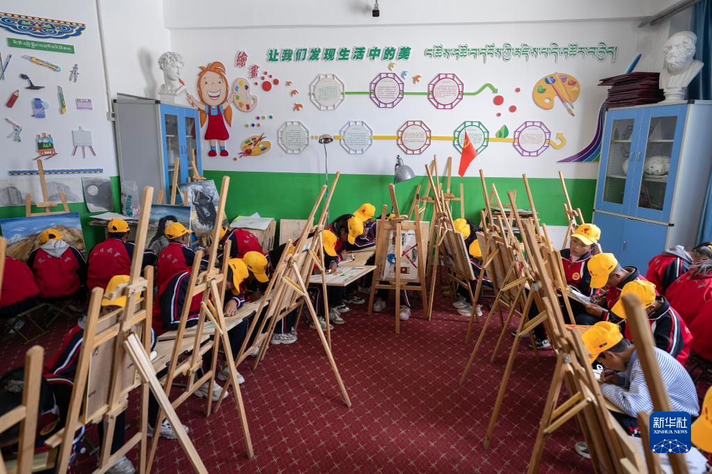 6月5日,扎西宗鄉完全小學的學生在上美術課。新華社記者 費茂華 攝