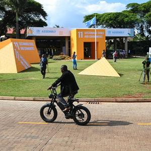 在肯尼亞首都內羅畢進行的為期5天的第二屆聯合國人居大會期間,一場低碳和電動交通載具展在聯合國內羅畢辦事處舉行,呼應著本屆大會重點關注的可持續的城市未來議題,通過綠色出行、降碳減排,緩解城市污染和氣候變化的影響。