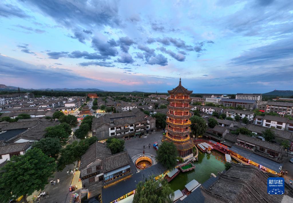 夜幕下的灤州古城景區(6月7日攝,無人機照片)。
