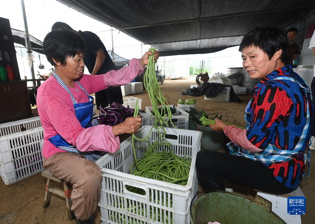 6月8日,在東白湖鎮孝義村的“美麗菜園”吳管家蔬菜基地,村民正在打包蔬菜。
