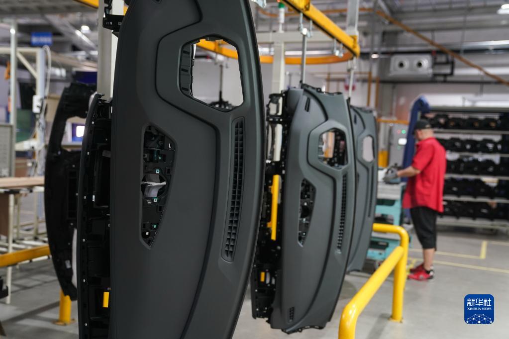 江蘇常熟汽飾集團生產的汽車儀表板成品(6月7日攝)。