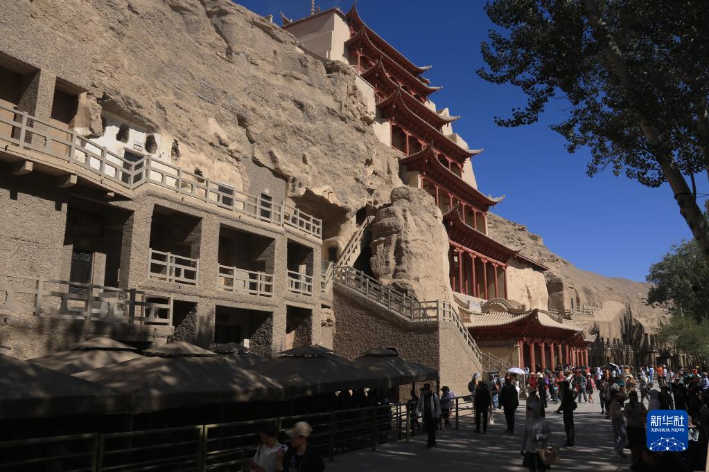 6月8日,游客在世界文化遺產地莫高窟參觀游覽。