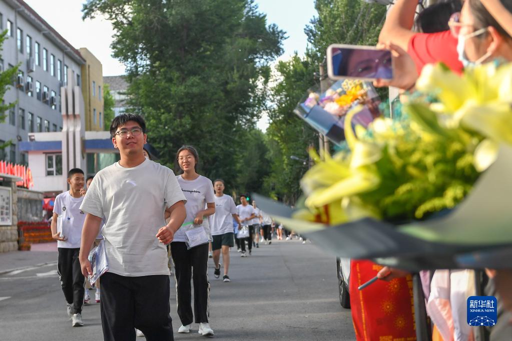 6月8日,在位于長春市的東北師大附中考點,考生陸續走出考場。