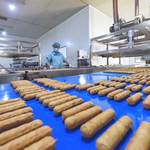 6月8日,河北邱縣一家面包生產企業工人在生產車間工作。