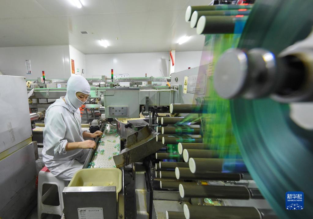 6月8日,河北邱縣一家糖果生產企業工人在生產車間工作。