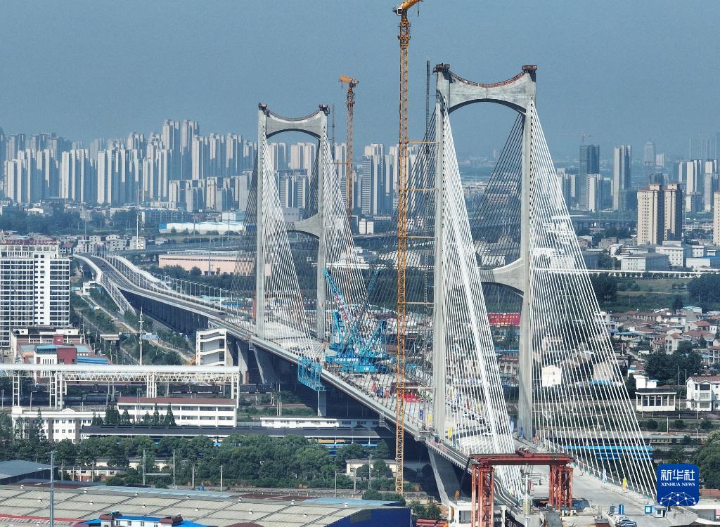 6月8日,中鐵十一局施工機械將襄陽北編組站大橋的最后一段鋼主梁吊裝到位。