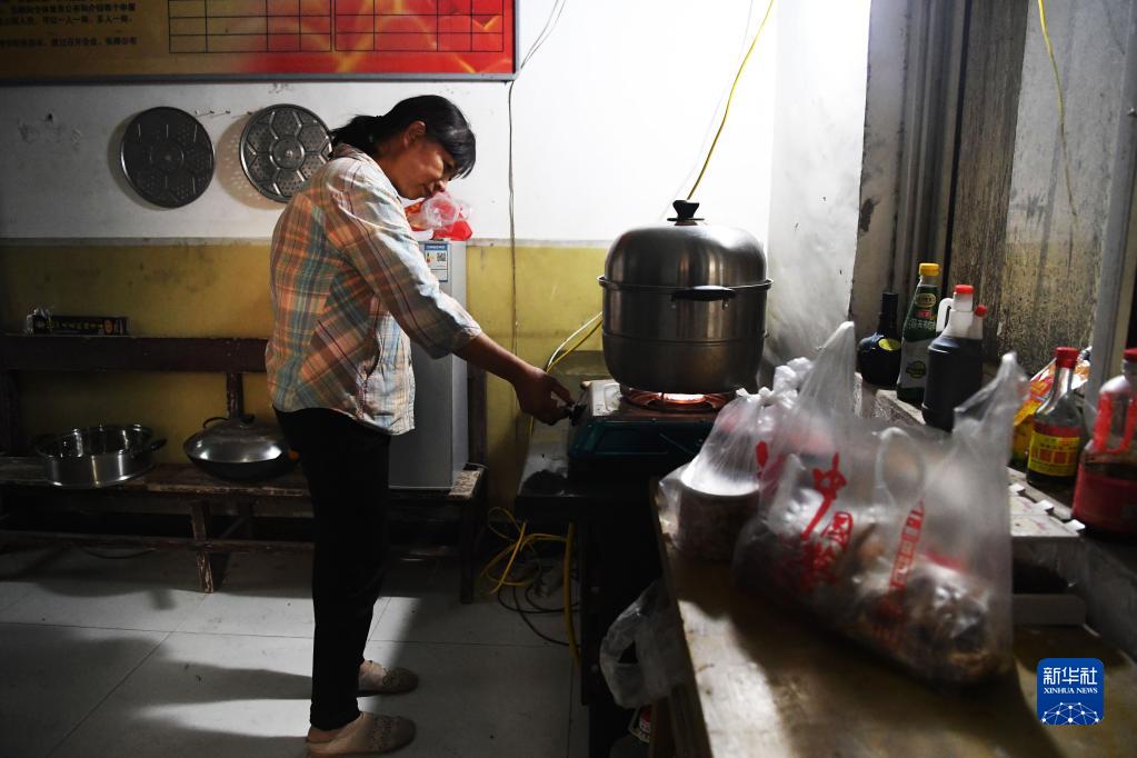 6月7日,在滑縣棗村鄉袁營村村委,村民在給搶收麥子的人做飯。