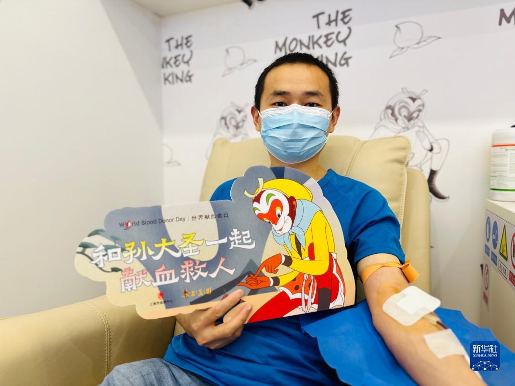 為迎接6月14日“世界獻血者日”,加強無償獻血宣傳,6月8日,由上海市血液中心與上海美術電影制片廠聯合打造的“熱血悟空”主題獻血屋在上海市黃浦區人民公園門口正式啟用,經典國產動畫《大鬧天宮》的元素讓獻血者置身“童話世界”,變身“熱血英雄”。