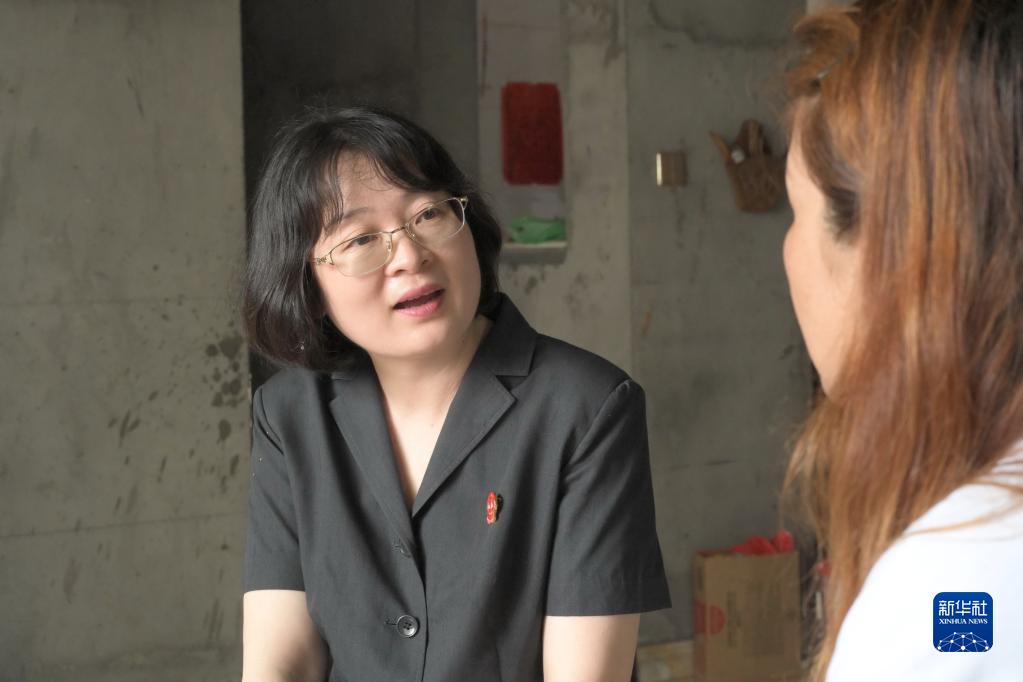 6月8日,“茉莉姐姐”服務團隊成員、福州市中級人民法院少年庭法官林菁菁在一位未成年當事人家中向其母親了解情況。