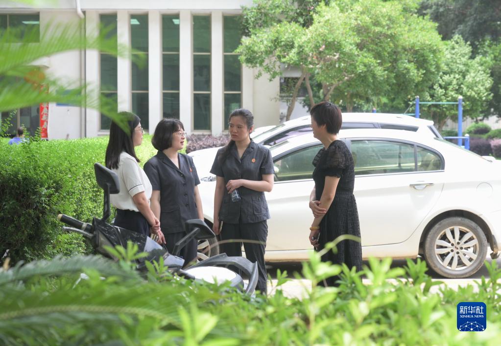 6月8日,“茉莉姐姐”服務團隊的幾名成員:閩侯縣青口鎮婦聯干部謝琳楠(左一)、福州市中級人民法院少年庭法官林菁菁(左二)、心理咨詢工作者陳巧鈴(右一)等探討未成年受害者現狀及后續跟蹤幫扶目標。