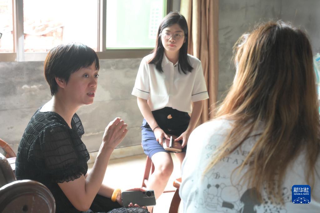 6月8日,“茉莉姐姐”服務團隊成員、心理咨詢志愿者陳巧鈴(左一)和閩侯縣青口鎮婦聯干部謝琳楠(左二)在一位未成年受害者家里為受害人的父母開展家庭教育指導。