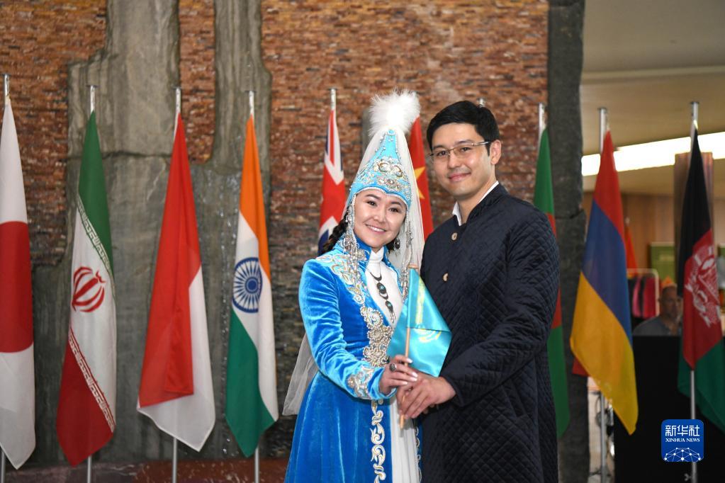 6月7日,在瑞士日內瓦,來自哈薩克斯坦的代表向來賓們展示本國特色的婚俗以及相關的文化傳統。