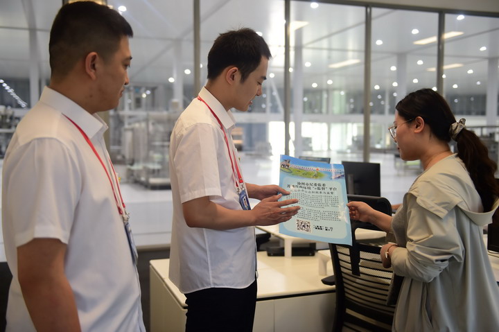 6月8日,滄州市運河區紀委監委工作人員向企業管理人員介紹“e監督”平臺使用方法。新華網發(謝辛 攝)