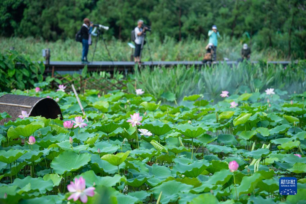 6月9日,人們在澳門龍環葡韻拍攝荷花。