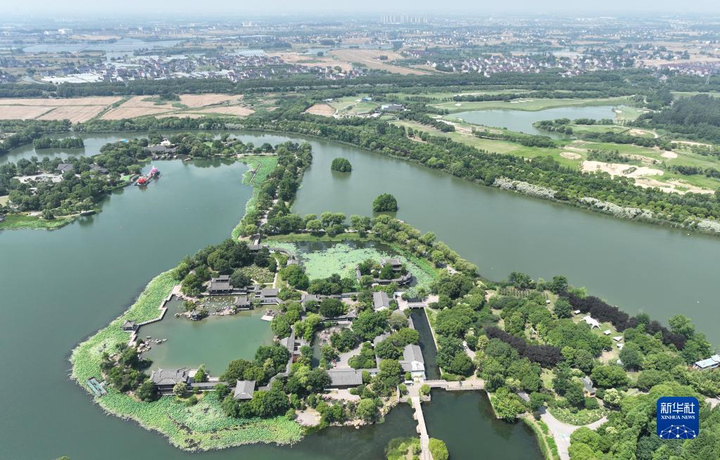 6月9日拍攝的常熟尚湖風景區景色(無人機照片)。