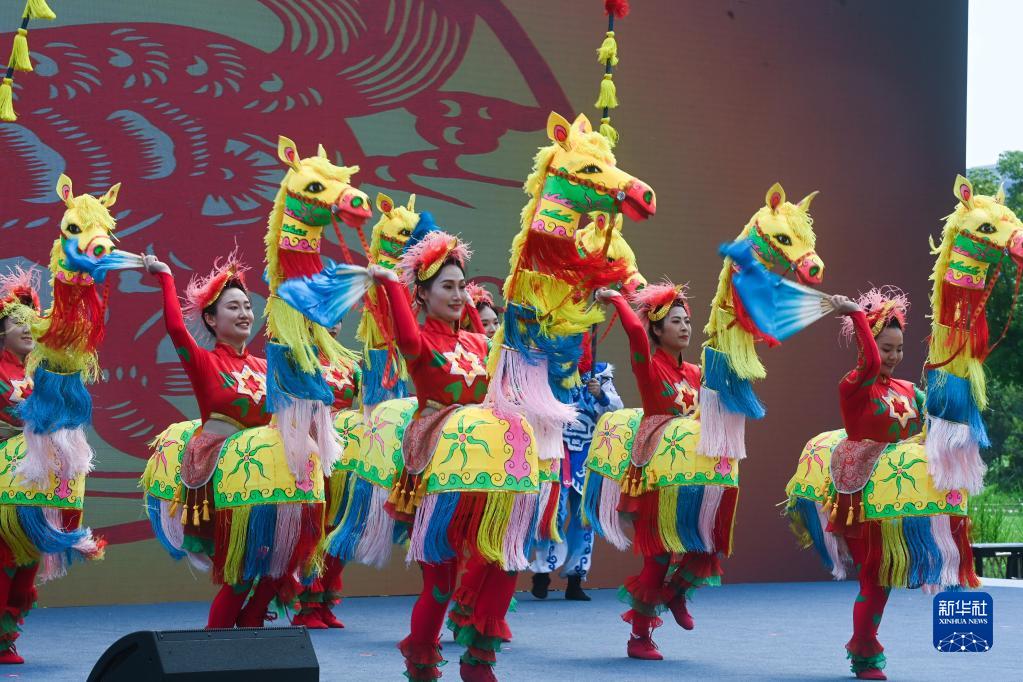 6月9日,活動現場舉行的非遺表演——臨平竹馬。