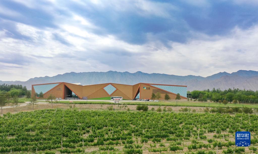 這是位于賀蘭山下的中糧長城天賦酒莊(6月5日攝,無人機照片)。
