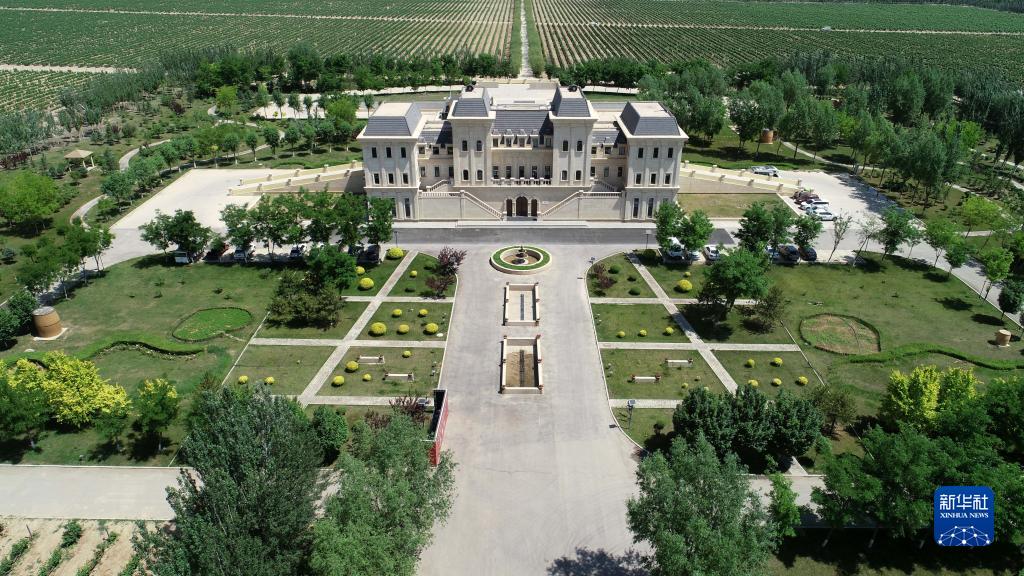 這是位于賀蘭山腳下的美賀莊園(6月8日攝,無人機照片)。