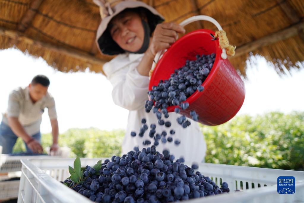 近日,山東省臨沂市沂南縣蘇村鎮藍莓園的100多畝藍莓陸續進入采收期,當地村民忙著采摘、分揀、裝運藍莓,藍莓園里一派豐收景象。近年來,沂南縣蘇村鎮在傳統農業的基礎上,引導農民發展藍莓、葡萄、櫻桃等特色種植業,進一步拓寬農民增收致富渠道。