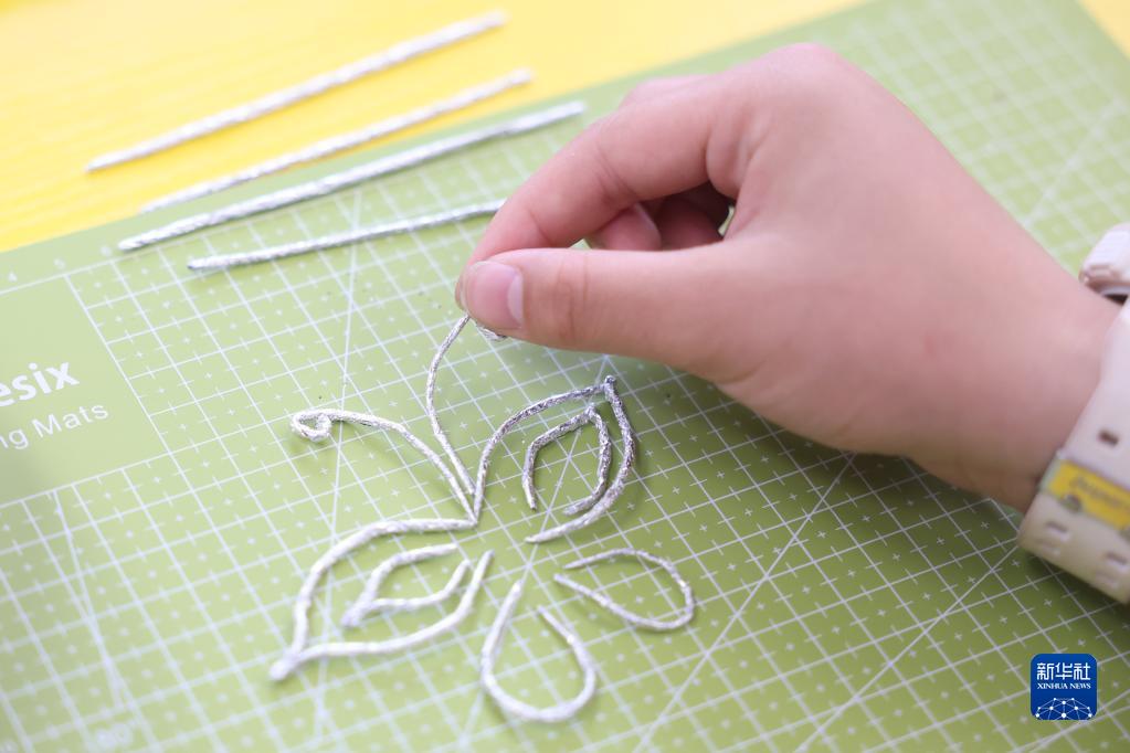 6月9日,湖南省長沙市朝陽小學學生在特色美育課上制作有苗族銀飾特色的手工作品。