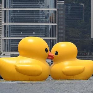 當日,兩只高約18米的“大黃鴨”亮相香港維多利亞港。這是闊別10年后,“大黃鴨”再度到港。據悉,兩只“大黃鴨”將于6月10日面向公眾開放,展期約兩周。