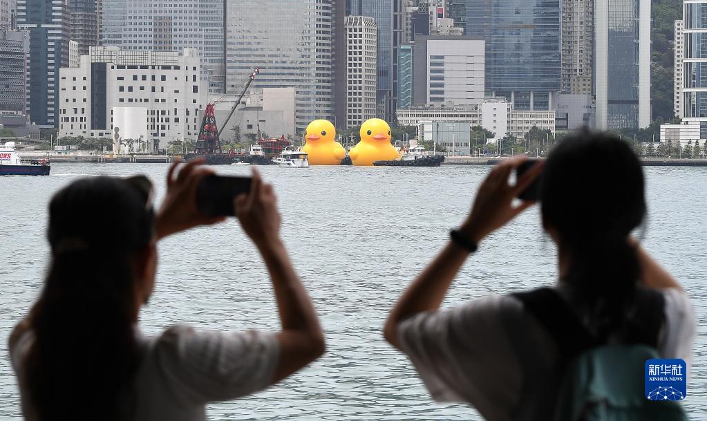 當日,兩只高約18米的“大黃鴨”亮相香港維多利亞港。這是闊別10年后,“大黃鴨”再度到港。據悉,兩只“大黃鴨”將于6月10日面向公眾開放,展期約兩周。