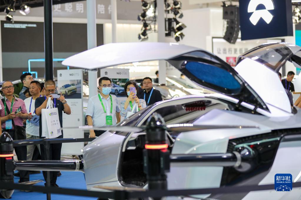 6月9日,參觀者在展覽會上了解國產飛行汽車。