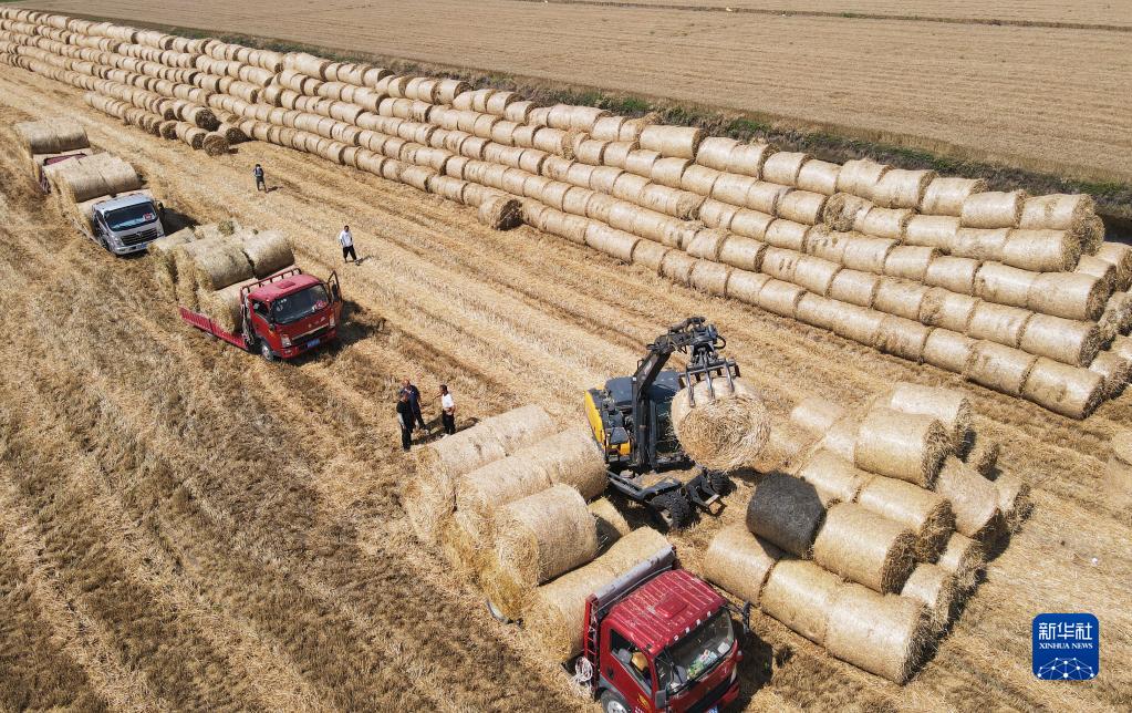 三夏時節,小麥豐收,各地農民及時將秸稈打捆回收。