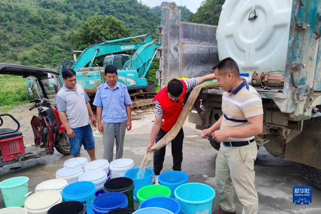 6月6日,廣西德??h城關鎮黨員先鋒隊為該鎮云梯村群眾送飲用水。