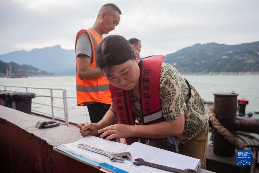 6月8日,工作人員在接收污染物完畢后填寫垃圾排放記錄信息。