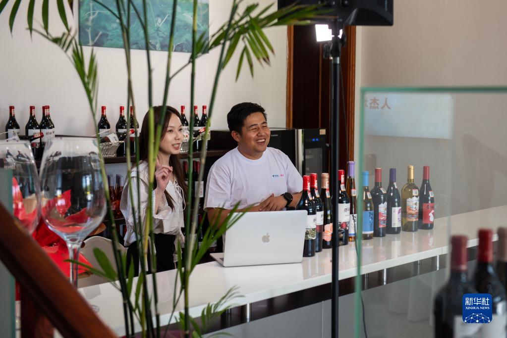 6月9日,主播在寧夏銀川市永寧縣一家葡萄酒莊直播銷售葡萄酒。