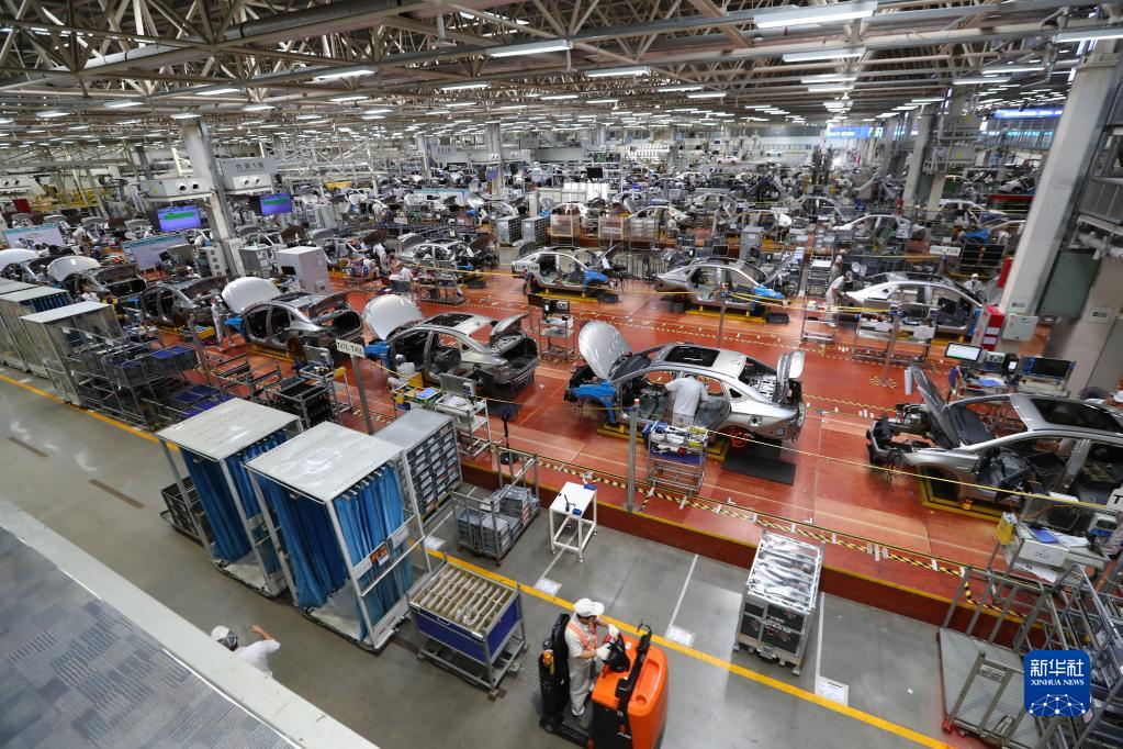 6月9日,工人在位于廣州番禺的廣汽埃安智能生態工廠內工作。