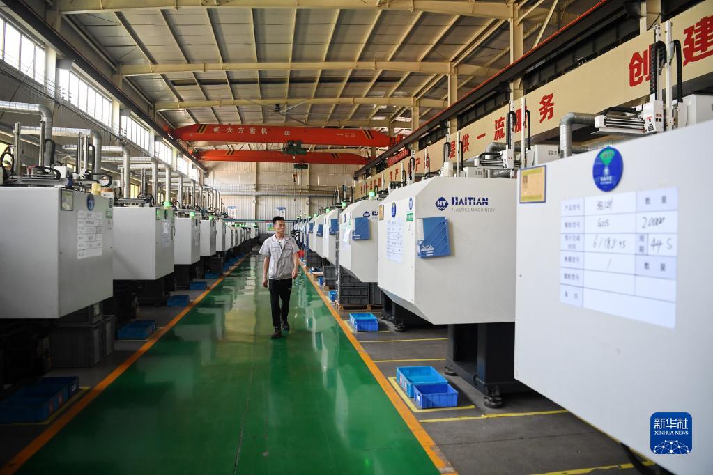 6月9日,河北滄州榮盛達電器有限公司工人在全自動生產線旁巡檢。