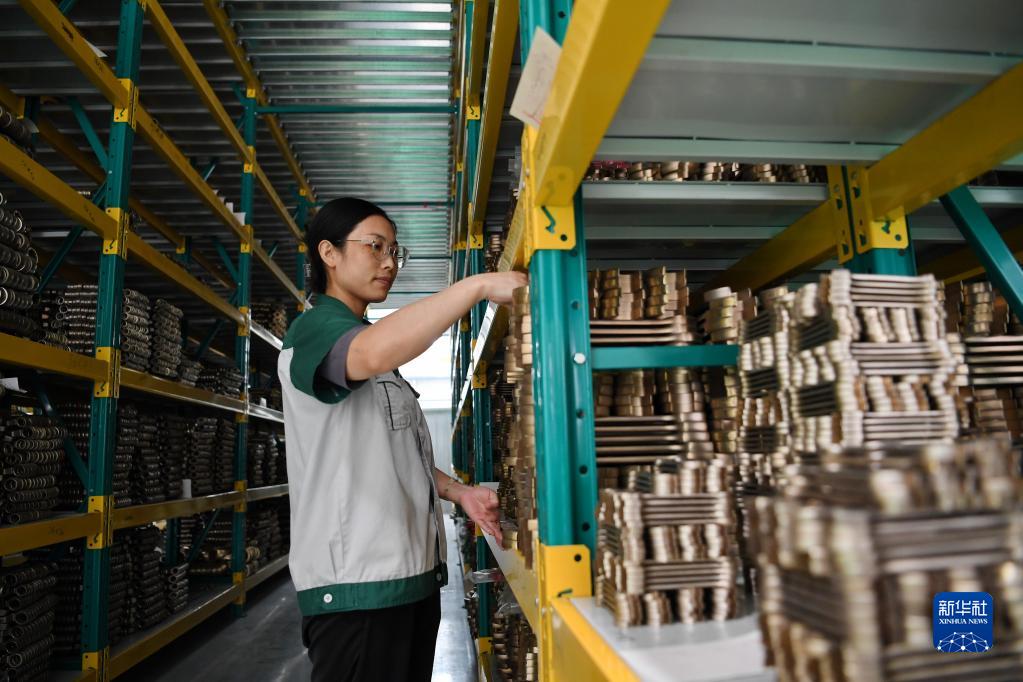 6月9日,河北滄州泊頭市中泊防爆工具集團股份有限公司的工人在核對產品信息。