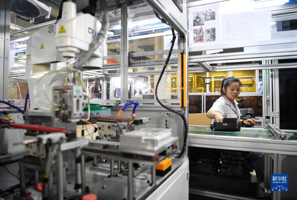 6月9日,河北滄州榮盛達電器有限公司工人在汽車保險盒生產線上工作。