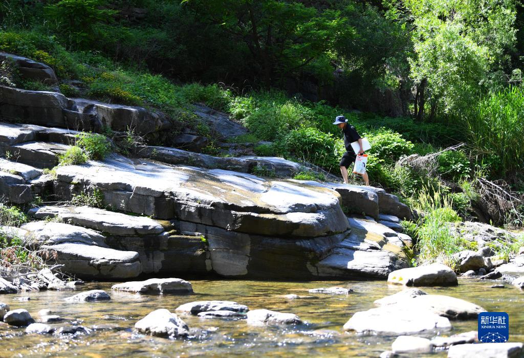 6月9日,在河南安陽林州市石板巖鎮三畝地村,一名學生帶著畫板尋找作畫地點。