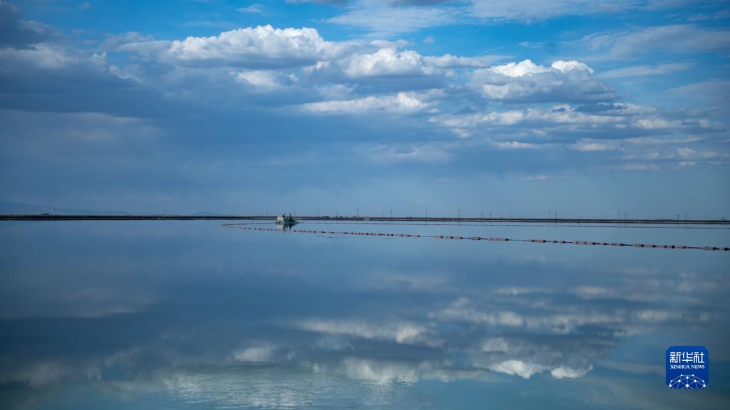 夏日時節,位于青海省海西蒙古族藏族自治州格爾木市境內的察爾汗鹽湖五彩斑斕,風光旖旎。