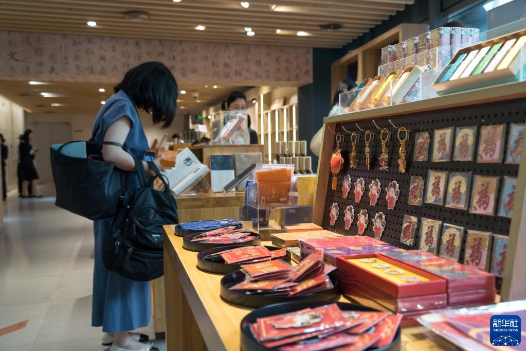 6月10日,活動嘉賓在成都博物館內選購“漢字中國:方正之間的中華文明展”周邊文創產品。